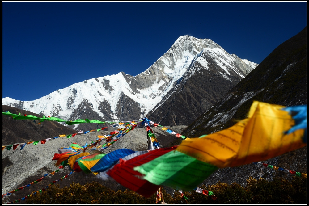 D7:蛇海翻越央迈勇、仙乃日垭口,过牛奶海、五色海—亚丁龙同坝—稻城早晨8点出发,出发一个小时后可以望见漂亮的蛇海。蛇海,海拔4600米,藏语叫作“勒西措”,位于央迈勇的西坡,成长条形,为古冰斗湖,央迈勇的冰雪直接下伸到平静的湖面,湖水泛着宝石般的蓝绿色。湖的周围有很多宗教传说,其一是此乃修密宗瑜珈的观湖之地,据传西藏大召寺第一任堪布,谢巴多吉高僧曾在此修瑜珈观湖。湖的出口处面对央迈勇有两座玛尼堆,从飘扬的经幡与地上大量的信物可以看出藏民对于神山的虔诚。过蛇海以后,继续向上到仙乃日央迈勇垭口,垭口海拔大约4900米,翻越垭口后就进入亚丁景区,过牛奶海,五色海,沿舍身崖下到络绒牛场,过络绒牛场后继续沿景区道路下到冲古寺,看仙乃日下的珍珠海后,下到景区大门——亚丁村龙同坝,包车过日瓦回到稻城县城。徒步就此结束,稻城海拔3750米。