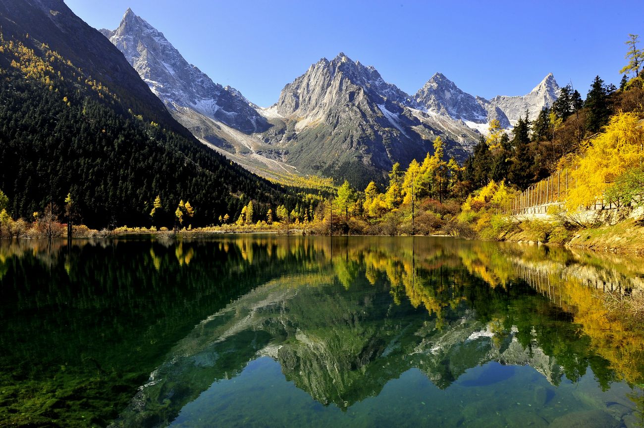 四姑娘山位于四川省阿坝州小金县与汶川县交界处,距离成都235千米,由四座常年被冰雪覆盖的山峰组成,她们从北到南,在3—5公里范围内一字排开,其高度分别为6250米、5355米、5276米、5038米。幺妹峰是阿坝州最高峰,享有“蜀山皇后”的美誉。这里终年积雪,山麓森林茂密,有“东方阿尔卑斯”之称,是开展登山等户外运动的理想场所。